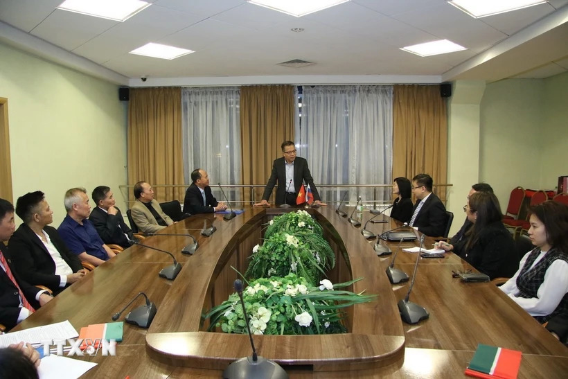 Đại sứ Đặng Minh Khôi phát biểu tại cuộc gặp Đại diện Cộng đồng người Việt Nam ở thành phố Kazan. Ảnh: Quang Vinh/TTXVN |