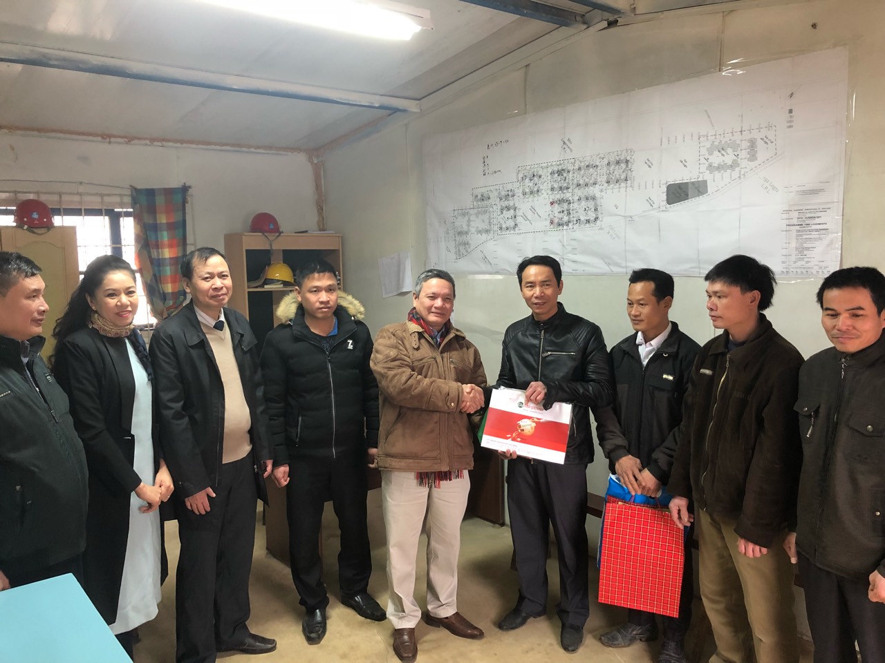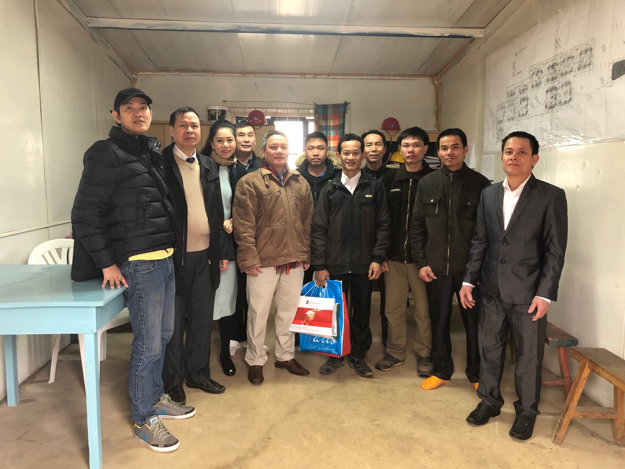 Ban Lãnh đạo công ty Côn Long (nhà thầu Trung Quốc sử dụng lao động Việt Nam) và toàn thể công nhân làm việc tại công trường đã vui mừng đón tiếp đoàn. Đại sứ Phạm Quốc Trụ đã trao tặng anh em công nhân quà tết và chúc mừng năm mới Ban lãnh đạo công ty và toàn thể anh em công nhân công trường.
