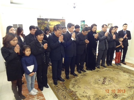 | Cán bộ nhân viên Đại sứ quán viếng Đại tướng - Ảnh: Châu Anh Nguyễn |