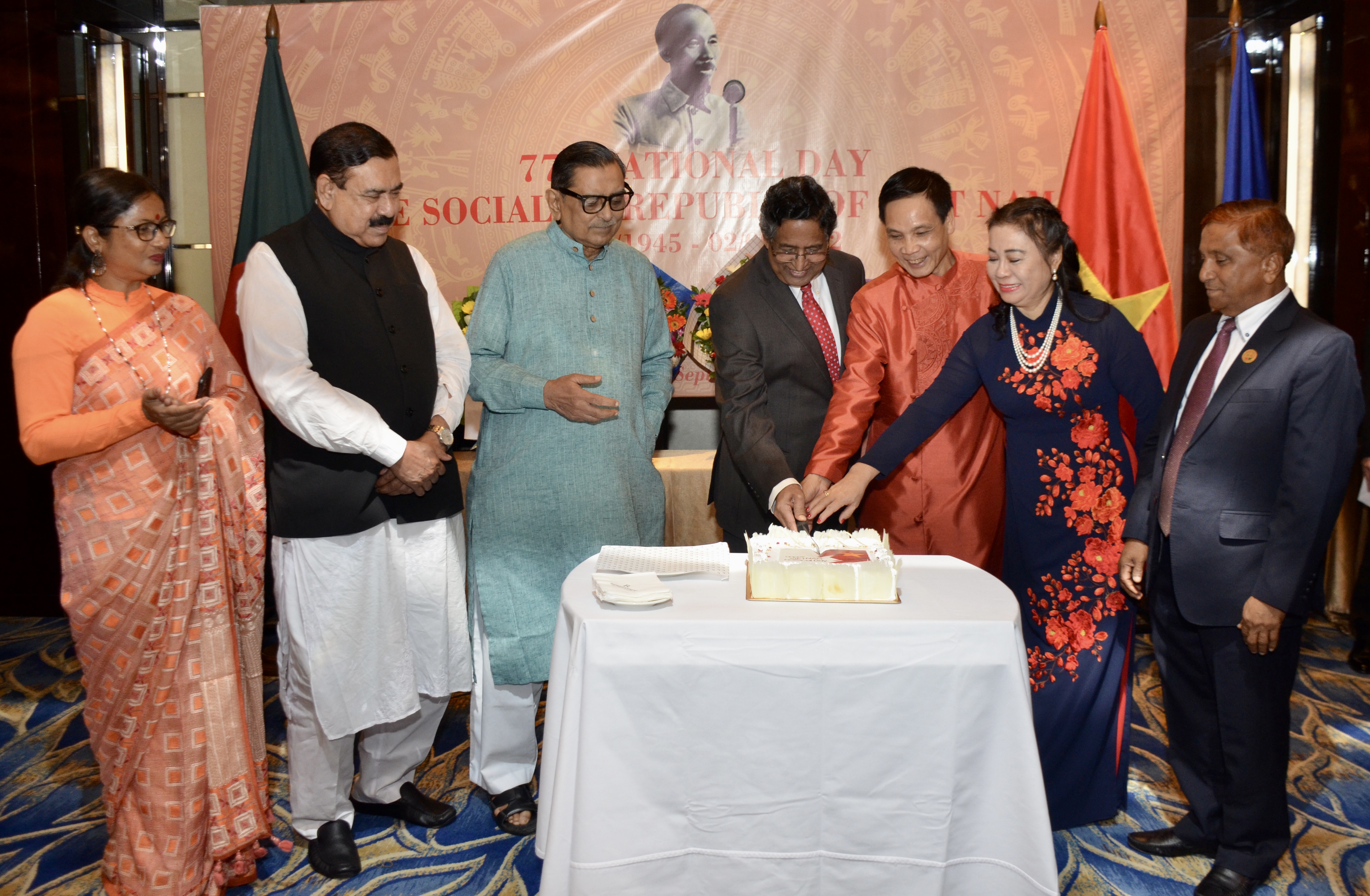 Tối 02/09, tại thủ đô Dhaka, Đại sứ quán Việt Nam tại Bangladesh tổ chức tiếp khách đối ngoại kỷ niệm 77 năm Quốc khánh nước Cộng hòa xã hội chủ nghĩa Việt Nam (2/9/1945-2/9/2022). Hơn 300 khách mời tham dự sự kiện.