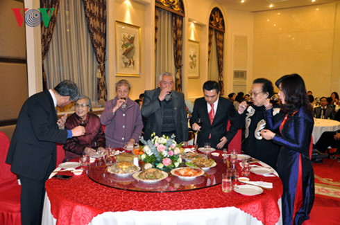 | Đại sứ Việt Nam Vương Thừa Phong chúc mừng bà con Việt kiều nhân dịp năm mới Bính Thân. (Ảnh: Vietnam+) |