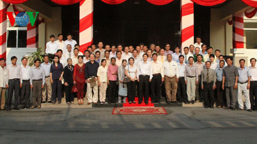 | Bà con người Việt Nam tại Campuchia chụp ảnh lưu niệm |
