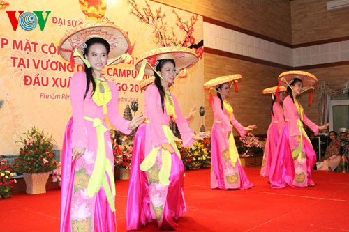 Đại sứ Việt Nam tại Campuchia Ngô Anh Dũng nhấn mạnh, buổi họp mặt đầu Xuân cũng là dịp để giới thiệu với bà con Việt kiều cùng cộng đồng người Việt Nam tại Campuchia trụ sở mới của Đại sứ quán nước ta, vừa được Thủ tướng Nguyễn Tấn Dũng cắt băng khai trương trong chuyến thăm Campuchia tháng 1/2014. Đại sứ quán mới được xây dựng khang trang, bề thế nhất từ trước đến nay, thể hiện sự ưu tiên của Việt Nam trong phát triển mối quan hệ hữu nghị truyền thống đặc biệt với Vương quốc Campuchia.