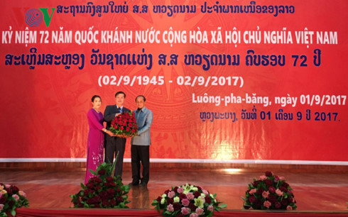 Trong 72 năm phát triển, đất nước Việt Nam đã đạt được nhiều thành tựu to lớn, nâng cao uy tín trong cộng đồng quốc tế dưới sự lãnh đạo sáng suốt của Đảng Cộng sản Việt Nam, của Chủ tịch Hồ Chí Minh vĩ đại cùng với sức mạnh tổng hợp của sự đoàn kết gắn bó của các dân tộc Việt Nam, sự ủng hộ của các nước và cộng đồng quốc tế cũng như sự đóng góp tích cực của cộng đồng bà con người Việt Nam định cư ở nước ngoài nói chung và tại Lào nói riêng.