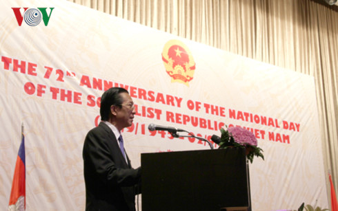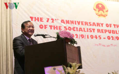 Phát biểu tại buổi lễ, Đại sứ Việt Nam tại Campuchia Thạch Dư khẳng định, 72 năm qua, dưới sự lãnh đạo của đảng Cộng sản Việt Nam, nhân dân Việt Nam đã đoàn kết một lòng, kiên cường vượt qua những chặn đường đầy hy sinh gian khổ và đã giành được những thành tựu to lớn, đưa Việt Nam từ một nước nghèo, kinh tế khó khăn trở thành một nước có nền kinh tế phát triển năng động, chính trị, xã hội ổn định, quốc phòng, an ninh được giữ vững, đời sống nhân dân được cải thiện, cải cách dân chủ ngày càng được tăng cường.