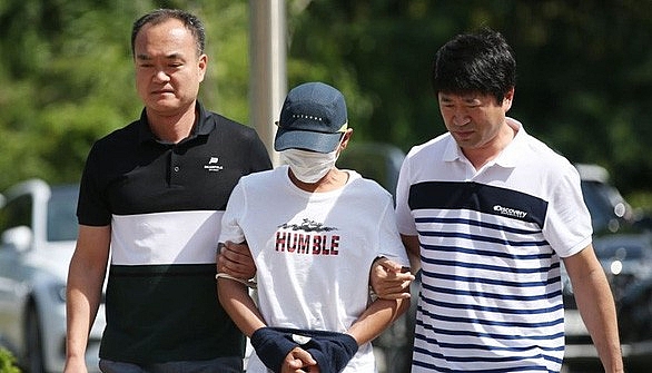 | Người chồng họ Kim bị cảnh sát đưa đến tòa án ngày 8/7. (Nguồn: Yonhap) |