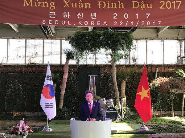Chương trình diễn ra trong bầu không khí vui tươi, đầm ấm và thắm tình hữu nghị. Mọi người đã cùng nhau quây quần bên bàn tiệc mang đậm hương sắc Tết quê hương Việt Nam với đào thắm sắc xuân, cùng nhau thưởng thức các tiết mục văn nghệ phong phú mang đậm nét truyền thống Việt Nam. Chương trình Tết cộng đồng không những đã trở thành điểm hội tụ của đông đảo các thế hệ người Việt đang sinh sống, lao động và học tập tại Hàn Quốc, mà còn là nhịp cầu giao lưu văn hóa giữa hai dân tộc Việt-Hàn. Phát biểu tại buổi lễ, Đại sứ Việt Nam tại Hàn quốc Phạm Hữu Chí, đánh giá cao những hoạt động của các hội đoàn người Việt tại Hàn Quốc trong những năm qua nhằm khơi dậy niềm tự hào dân tộc, giữ gìn bản sắc văn hóa dân tộc, tinh thần đoàn kết, gắn bó trong cộng đồng. Phát biểu tại buổi lễ, Đại sứ Phạm Hữu Chí nói: " Đây là dịp mỗi năm một lần, tất cả bà con đại diện của cộng đồng về đây sum họp như là một gia đình để cùng nhau gặp nhau đón một năm mới thật vui tươi và hạnh phúc. Trước hết mong cộng đồng Việt Nam ăn Tết vui và quan trọng nhất là an lành sau đó bắt tay vào một năm mới làm việc tốt và đóng góp nhiều cho quê hương đất nước. Năm 2017 là một năm quan trọng bởi vì là năm kỷ niệm 25 năm thiết lập quan hệ ngoại giao, cộng đồng người Việt sẽ đóng góp một vai trò hết sức quan trọng, đặc biệt trong việc thúc đẩy giữa giao lưu nhân dân giữa hai nước. Các cô dâu sẽ đưa các chú rể về Việt Nam, về quê ngoại, tăng cường đoàn kết giao lưu giữa nhân dân hai nước".