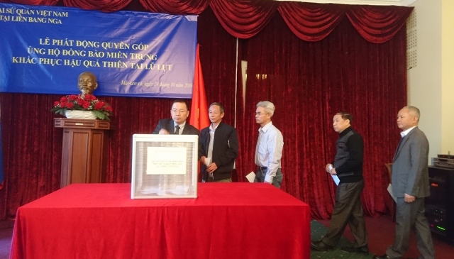 Hưởng ứng lời kêu gọi của Đại sứ, các cán bộ, nhân viên Đại sứ quán và các cơ quan đại diện Việt Nam tại Liên bang Nga đã sẵn sàng đóng góp ít nhất một ngày lương; đại diện các đoàn thể, doanh nghiệp và cả những cá nhân bà con Việt Nam tại Liên bang Nga đã tới tham dự và góp những phần tiền mang đầy tình cảm của những người con xa xứ, mong cho đồng bào mình vơi bớt phần nào những thiệt hại, khó khăn trong cuộc sống.