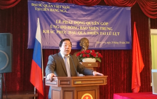 | Đại sứ Nguyễn Thanh Sơn kêu gọi cộng đồng người Việt tại liên bang Nga ủng hộ đồng bào miền Trung khắc phục khó khăn do thiên tai. |
