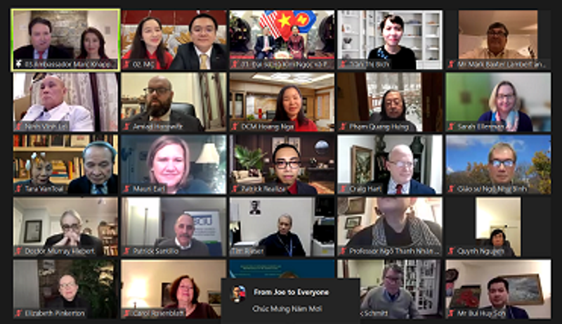 Đại sứ quán Việt Nam tại Mỹ ngày 22/01 tổ chức chương trình Xuân Quê hương mừng xuân Nhâm Dần 2022 với hình thức trực tuyến. Tham dự buổi lễ có gần 150 khách mời từ các điểm cầu trên khắp nước Mỹ, trong đó có các đại diện tiêu biểu của cộng đồng người Việt Nam tại Mỹ cùng nhiều bạn bè Mỹ và quốc tế gắn bó với Việt Nam.