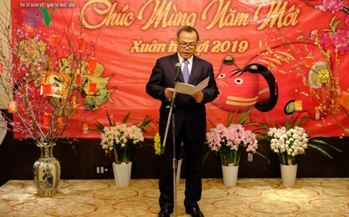 Đại sứ cho biết cùng với sự phát triển của quan hệ giữa 2 nước, cộng đồng người Việt Nam tại Nhật Bản cũng đã có những bước phát triển mạnh mẽ trong những năm gần đây và khẳng định đất nước Việt Nam luôn tự hào về cộng đồng người Việt trên đất nước Mặt trời mọc. Trong không khí rộn ràng đón Xuân Kỷ Hợi, Đại sứ cũng vui mừng thông báo về những thành quả kinh tế, chính trị và xã hội của Việt Nam năm qua cũng như sự hợp tác mạnh mẽ giữa chính phủ và nhân dân 2 nước Việt Nam – Nhật Bản.
