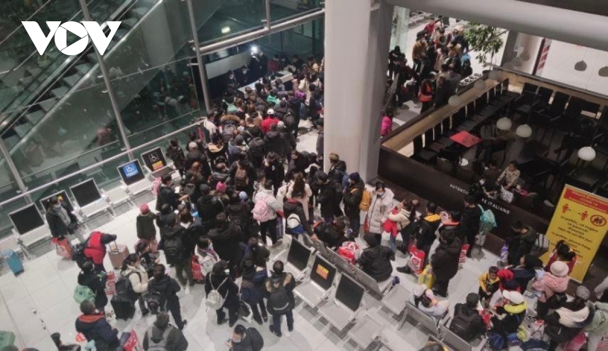 Bà con người Việt tại sân bay quốc tế ở thủ đô Bucharest - Ảnh: VOV |