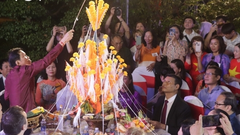 Hôm qua (02/04), Đoàn cán bộ Đại sứ quán Việt Nam tại Thái Lan do Đại sứ Phạm Việt Hùng dẫn đầu đã đến Đại sứ quán Lào tại Thái Lan chúc Tết cổ truyền Bunpimay của Lào.