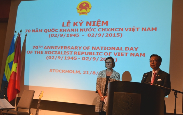 Phát biểu tại buổi lễ, bà Quốc vụ khanh Ngoại giao Annika Söder ca ngợi các thành tựu to lớn mà Chính phủ, nhân dân Việt Nam đã giành được trong những năm qua; khẳng định Chính phủ Thụy Điển coi trọng quan hệ truyền thống, hữu nghị và hợp tác với Việt Nam; bày tỏ tình cảm sâu sắc đối với nhân dân Việt Nam và hy vọng trong thời gian tới quan hệ hợp tác nhiều mặt giữa hai nước sẽ được củng cố, phát triển vì lợi ích chung của nhân dân hai nước.