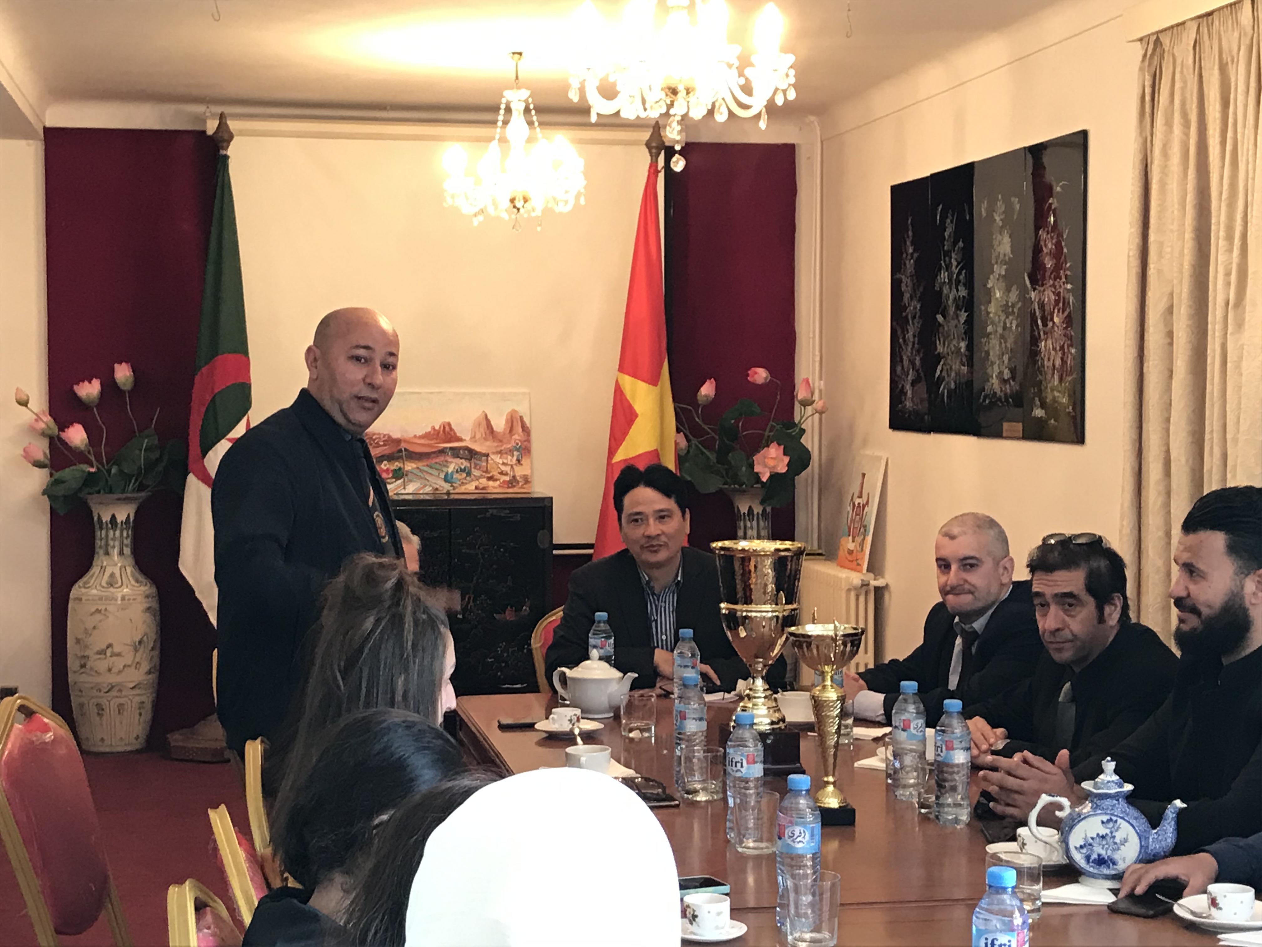 Phát biểu tại cuộc gặp, Trưởng môn phái Quán Khí đạo Algeria Farid Mously bày tỏ vui mừng khi đến chào Đại sứ và thông báo kết quả tốt đẹp trong chuyến thi đấu vừa qua tại Italia. Ông Farid Mously đã thông tin cụ thể chương trình thi đấu, các hoạt động của đoàn và thành tích cụ thể đạt được trong mỗi nội dung. Nhân dịp này, thay mặt các thành viên của môn phái, ông Farid Mously gửi lời cảm ơn đến các cơ quan, đối tác của Việt Nam đã hỗ trợ hoạt động của đoàn trong suốt quá trình di chuyển và thi đấu, bày tỏ mong muốn tiếp tục nhận được sự hỗ trợ của Đại sứ quán Việt Nam tại Algeria trong việc tổ chức các hoạt động giao lưu võ thuật, văn hóa, nhất là việc giảng dạy tiếng Việt trong võ thuật cho các võ sinh.