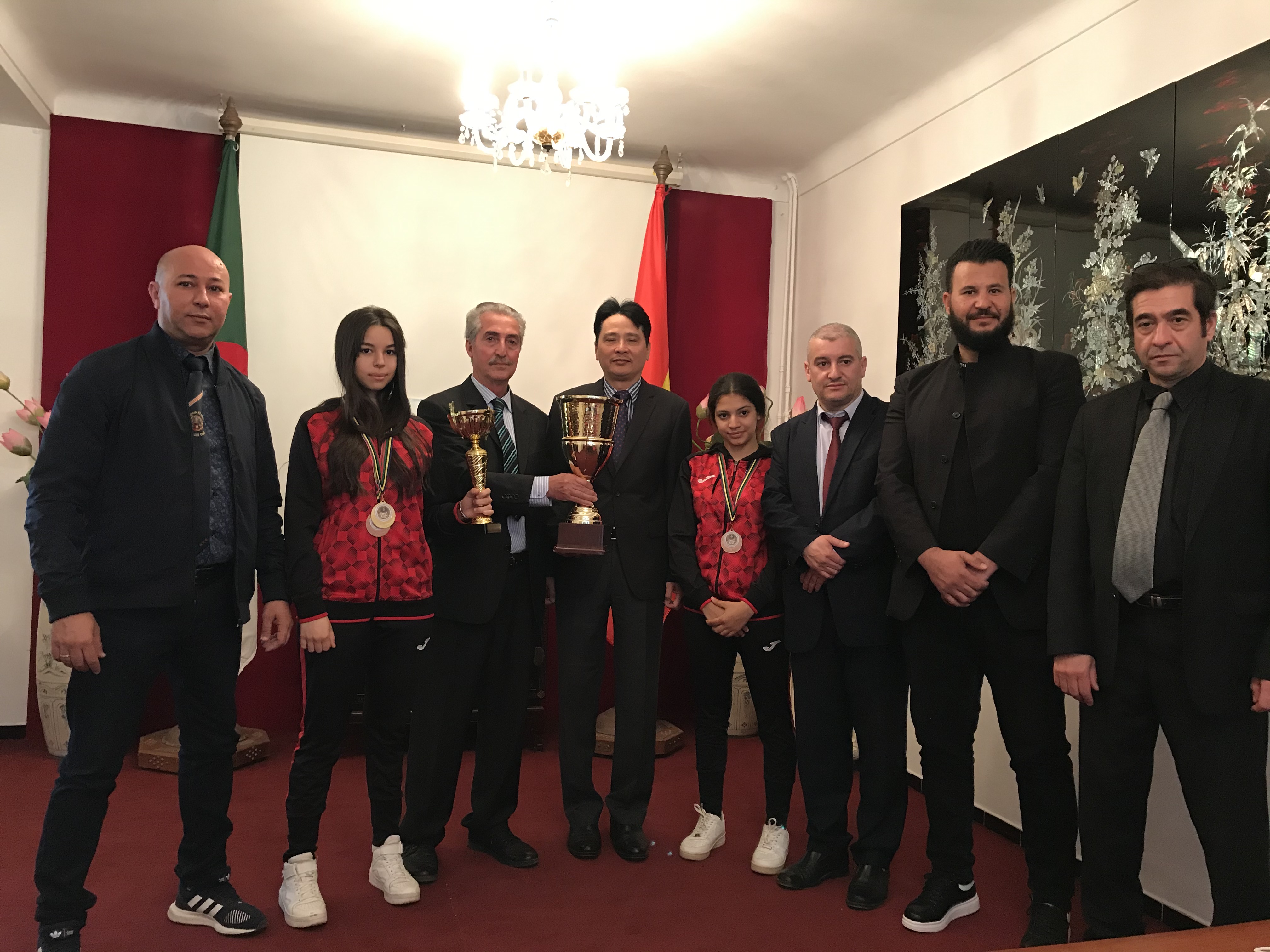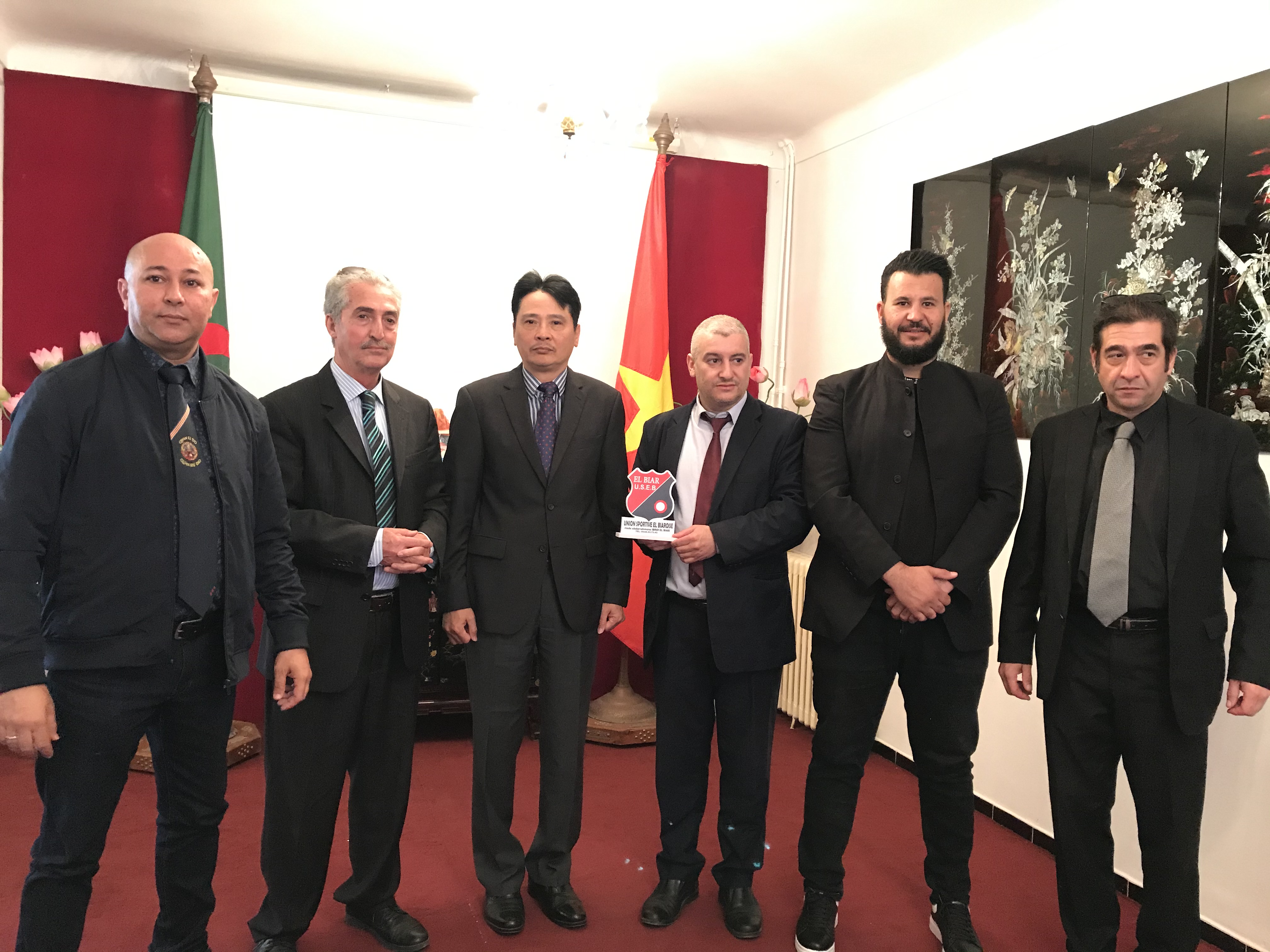 Đội tuyển Quán Khí đạo Algeria tặng kỷ niệm chương cho Đại sứ Nguyễn Thành Vinh. |