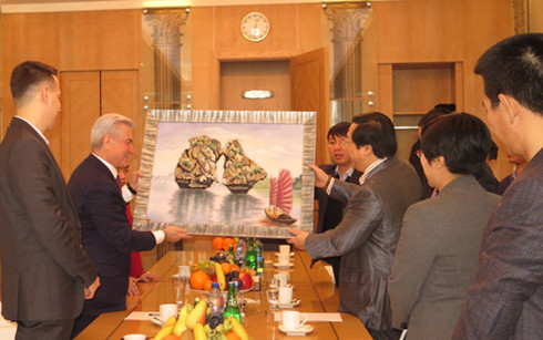 | Đại sứ Nguyễn Thanh Sơn tặng ông TGĐ bức tranh phong cảnh Hạ Long của VN |