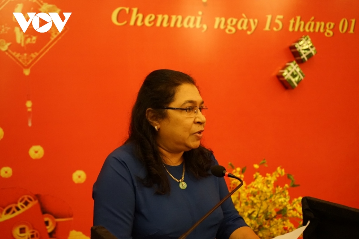 Thay mặt cộng đồng người Việt Nam tại Chennai, chị Alima - Chủ tịch hội người Việt tại Chennai - bày tỏ sự cảm ơn đối với Đại sứ quán Việt Nam tại Ấn Độ đã quan tâm đến bà con cộng đồng người Việt tại Ấn Độ và đặc biệt là bà con ở Chennai.