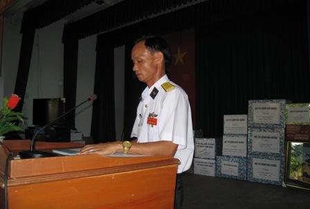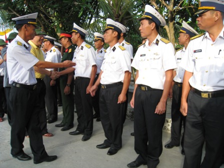 | Chỉ huy trưởng đảo Nam Yết giới thiệu các cán bộ trên đảo |