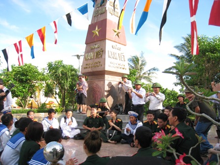 Trong thời gian ở thăm đảo, đoàn đã tiến hành thắp hương cho sáu liệt sĩ đã an nghỉ tại nghĩa trang đảo Nam Yết và trồng cây bồ đề trong khuôn viên của đảo và cùng hòa giọng hát vang các bài hát về biển đảo quê hương với các cán bộ, chiến sĩ đảo Nam Yết đang ngày đêm thực hiện tốt nhiệm vụ bảo vệ vững chắc chủ quyền vùng biển, đảo thiêng liêng của Tổ quốc./.