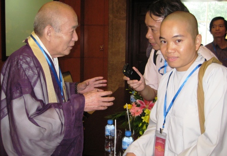 | Hòa thượng Yoshimizu Daiichi (bên trái), Tiến sĩ Thích Ni Tâm Trí ( bên phải) tại Hội nghị Kiều bào toàn thế giới lần thứ 2 năm 2012 |