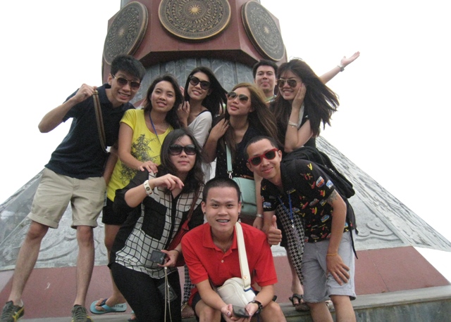 | Một nhóm thanh niên kiều bào tại chân cột cờ Lũng Cú, Hà Giang |