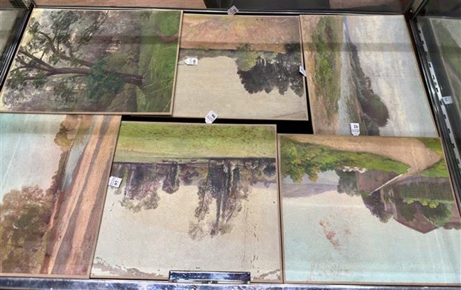 Một số tác phẩm của Vua Hàm Nghi được đưa ra bán đấu giá ngày 22/9. Ảnh: Nguyễn Thu Hà/TTXVN |
