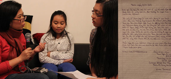 -Cháu là Phạm Kiều Anh, 12 tuổi. Cháu học tiếng Việt lâu rồi nhưng vẫn chưa biết nhiều.