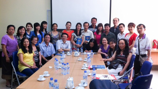 | các học viên chụp hình kỷ niệm với Giáo sư Nguyễn Minh Thuyết |