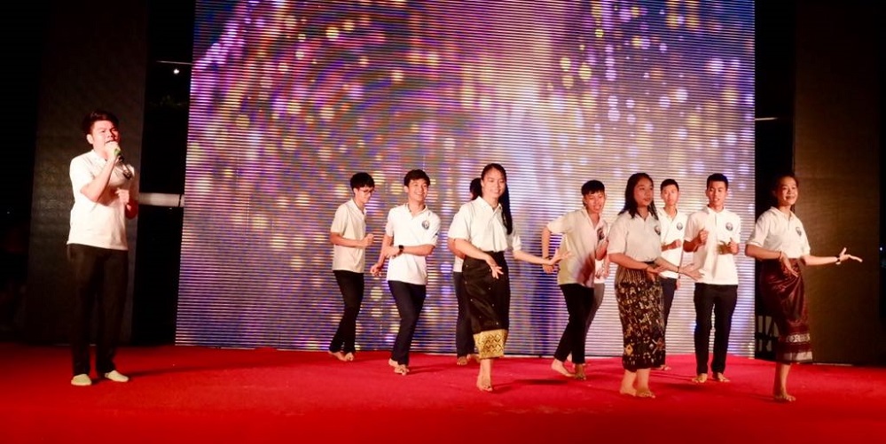 Đoàn đại biểu kiều bào Lào mang đến một tiết mục múa truyền thống của đất nước Lào.