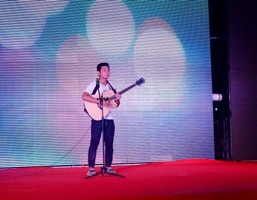 Nguyễn Trung Kiên, kiều bào Hoa Kỳ, bên cây đàn ghi ta với bài hát "Let it me"