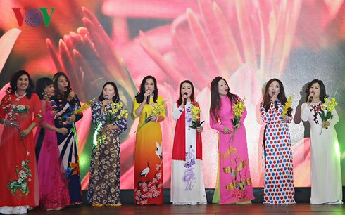 | Một tiết mục văn nghệ tại đêm thơ - nhạc về chủ đề mùa xuân và phái đẹp. |