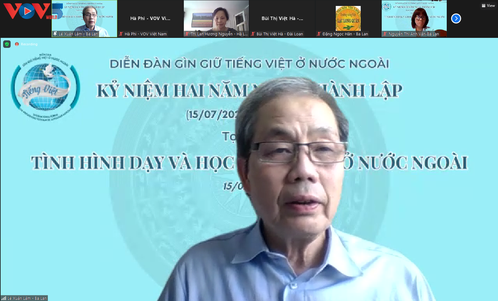 Trưởng ban điều hành Diễn đàn, ông Lê Xuân Lâm (Chủ tịch Hội đồng trường tiếng Việt Lạc Long Quân, Ba Lan) cho biết: “Hội thảo “Dạy và học tiếng Việt ở nước ngoài” lần thứ nhất, do trường tiếng Việt Lạc Long Quân cùng Hội người Việt Nam tại Ba Lan chủ trì tổ chức đã rất thành công với những chia sẻ đa dạng và tâm huyết từ những chuyên gia ngôn ngữ uy tín, và các thầy, cô dạy tiếng Việt năng động từ nhiều nước trên thế giới. Ngay sau Hội thảo, nhiều đề nghị đã được gửi tới Ban tổ chức Hội thảo với mong muốn hoạt động kết nối quốc tế này sẽ tiếp tục được duy trì, do đó, Diễn đàn Gìn giữ tiếng Việt ở nước ngoài đã ra đời với 15 thành viên từ nhiều nước của Ban điều hành. Buổi tọa đàm lần này được tổ chức nhằm kỷ niệm 2 năm thành lập Diễn đàn, đánh dấu một chặng đường tiếp tục phát triển mới mạng lưới trực tuyến của những người tham gia công tác truyền bá tiếng Việt trên thế giới”.