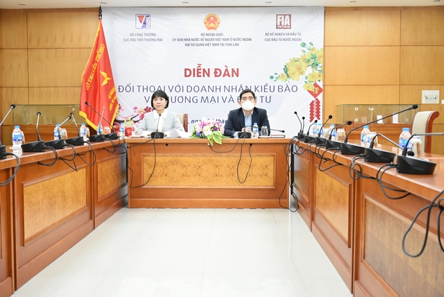 Chiều ngày 04/03/2022, Ủy ban Nhà nước về người Việt Nam ở nước ngoài, Bộ Ngoại giao đã phối hợp với Đại sứ quán Việt Nam tại Thái Lan, Cục Xúc tiến Thương mại (Bộ Công Thương) và Cục Đầu tư nước ngoài (Bộ Kế hoạch & Đầu tư) tổ chức Diễn đàn đối thoại với doanh nhân kiều bào về đầu tư và thương mại.