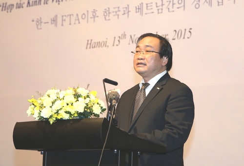 Phát biểu tại hội nghị, Phó Thủ tướng Chính phủ Hoàng Trung Hải nêu bật những dấu mốc quan trọng trong tiến trình hội nhập kinh tế quốc tế của Việt Nam, trong đó có việc ký kết Hiệp định Thương mại tự do Việt Nam-Hàn Quốc vào giữa năm nay. Phó Thủ tướng cho rằng, đây là cơ hội lớn để giới doanh nghiệp, các nhà đầu tư đầu tư hai nước tiếp tục mở rộng hợp tác, tăng cường giao thương, tận dụng được nhiều hơn những lợi thế của nhau để hợp tác đôi bên cùng có lợi. Phó Thủ tướng mong muốn cộng đồng doanh nghiệp Hàn Quốc tiếp tục quan tâm, mở rộng đầu tư vào Việt Nam trên các lĩnh vực như: nông nghiệp, giáo dục, hạ tầng giao thông, năng lượng, môi trường, y tế, công nghiệp chế biến, chế tạo, công nghiệp hỗ trợ.