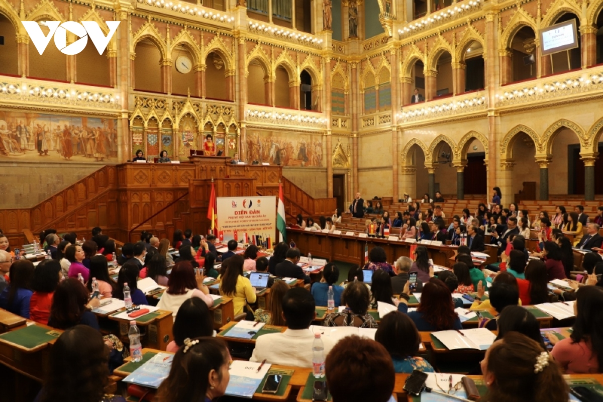 Phát biểu tại buổi lễ, bà Mátrai Márta - Phó Chủ tịch thường trực Quốc hội Hungary nhấn mạnh lại các dấu mốc lịch sử trong mối quan hệ hữu nghị truyền thống giữa hai nước và khẳng định cộng đồng người Việt tại Hungary đã có nhiều đóng góp trong hợp tác kinh tế, giáo dục, quảng bá văn hóa và hội nhập tốt với nước sở tại. Bà cũng bày tỏ vui mừng khi một Diễn đàn có quy mô lớn của phụ nữ Việt Nam tổ chức lần đầu tiên ở châu Âu với chủ đề “Thời đại 4.0 - Phụ nữ giữ gìn giá trị Việt và hội nhập ở nước ngoài” qua đó khẳng định hơn vai trò của người phụ nữ trong thời đại mới, tham gia tích cực trong các hoạt động giữ gìn, phát huy các giá trị của Việt Nam và hội nhập tốt ở nước ngoài.