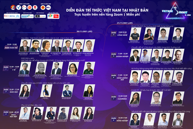Diễn đàn Trí thức Việt Nam tại Nhật Bản 2021 (Vietnam Summit in Japan 2021) sẽ diễn ra ngày 20/11 theo hình thức trực tuyến. Hơn 30 diễn giả uy tín, gần 50 khách mời là các nhân sĩ trí thức, doanh nhân, nghệ sĩ trong và ngoài nước cùng khoảng 1000 khán giả là đại diện các thành phần cộng đồng người Việt tại Nhật và các hội trí thức các nước trên thế giới, sẽ cùng tham gia thảo luận, chia sẻ góc nhìn về các chủ đề mang tính thời sự.