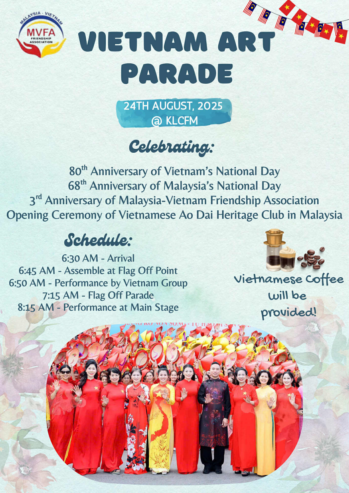Chương trình được tổ chức nhân dịp kỷ niệm 80 năm Quốc khánh nước CHXHCN Việt Nam (2/9/1945 – 2/9/2025), 68 năm Quốc khánh Malaysia (31/8/1957 – 31/8/2025), 3 năm thành lập Hiệp hội Hữu nghị Malaysia - Việt Nam (MVFA), đồng thời, đánh dấu Lễ ra mắt Câu lạc bộ Di sản Áo dài Việt Nam tại Malaysia.