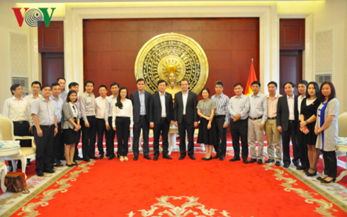 Đồng chí cũng bày tỏ mong muốn Trung ương Đoàn luôn sẵn sàng phối hợp với các cơ quan đại diện Việt Nam tại những nước có đông đảo du học sinh, qua đó kiến nghị với Đảng và Nhà nước những chính sách đặc thù đối với du học sinh và hoạt động của các Hội Thanh niên, Hội Sinh viên Việt Nam tại nước ngoài để tập hợp rộng rãi và phát huy hiệu quả hơn nữa đội ngũ nhân lực có trình độ cao này hướng tới các công việc nhằm phục vụ, đóng góp cho sự phát triển của đất nước.