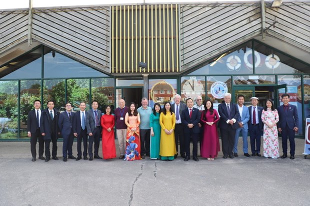 Cán bộ nhân viên Đại sứ quán Việt Nam tại Anh chụp ảnh với nhân viên Bảo tàng thị trấn Newhaven. Ảnh: Hải Vân/Vietnam+ |