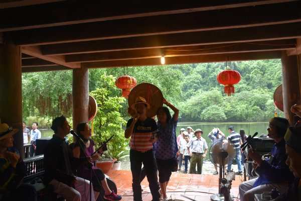 | Những điệu múa, câu hát dân ca quan họ đã được các thầy cô giáo thể hiện khi đến thăm quan Tràng An. |