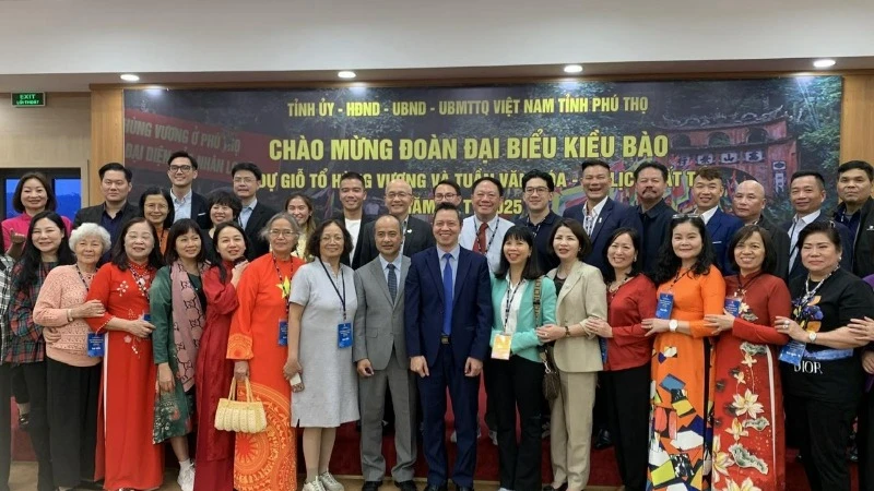 Đoàn kiều bào chụp ảnh lưu niệm với lãnh đạo Ủy ban nhân dân tỉnh Phú Thọ. Ảnh: Ủy ban người Việt Nam ở nước ngoài |