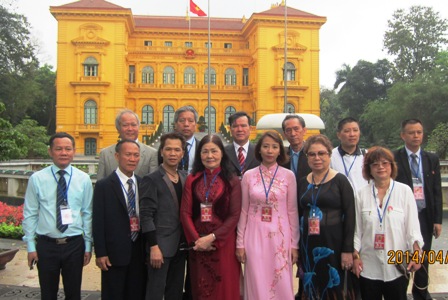 | Chụp ảnh lưu niệm trước Phủ Chủ tịch |