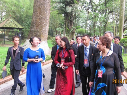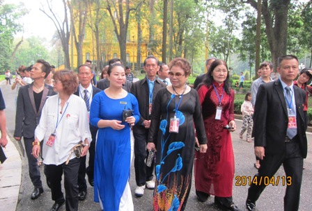 | Các đại biểu kiều bào hòa vào dòng người thăm khu di tích Phủ chủ tịch |