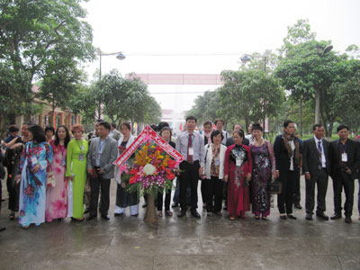 | Đoàn dâng hoatưởng nhớ Bác tại nhà tưởng niệm Khu di tích Kim Liên. Quehuongonline |