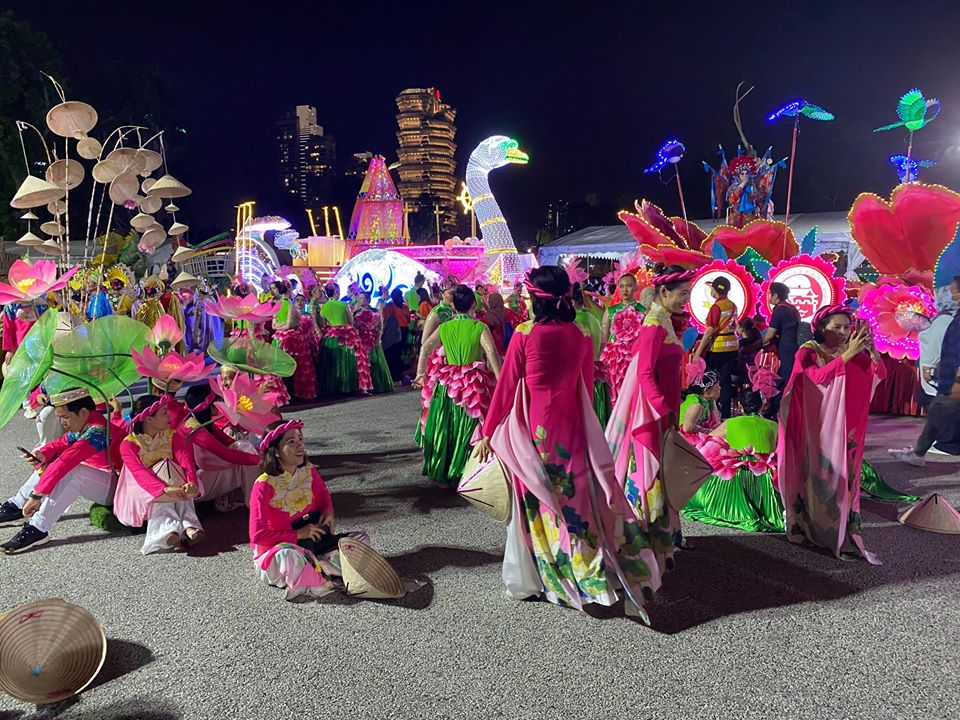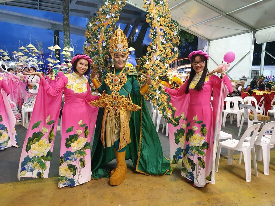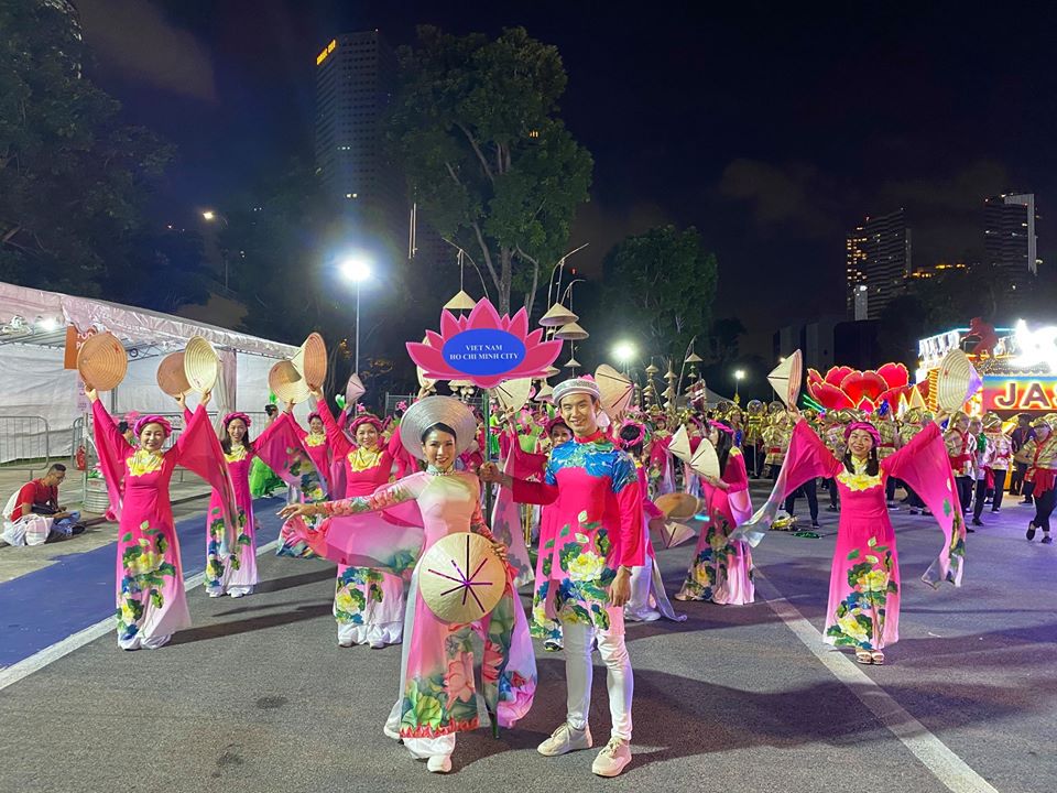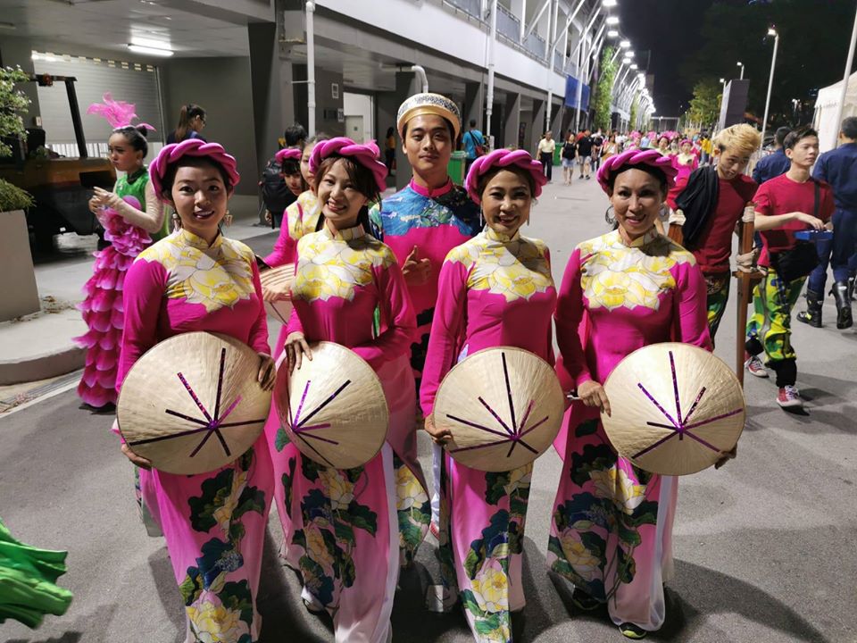 Với chủ đề “Sắc màu Việt Nam”, đoàn nghệ thuật Việt Nam gồm 40 nghệ sĩ từ trong nước và 100 diễn viên quần chúng từ cộng đồng người Việt Nam tại Singapore đã biểu diễn những tiết mục hết sức ấn tượng, trên nền nhạc cổ truyền, điệu hò xự xang (ngũ cung).
