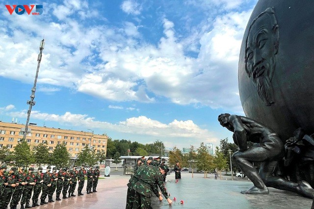 Đoàn Quân đội nhân dân Việt Nam dâng hoa tại tượng đài Bác. Ảnh: PV VOV tại Nga |