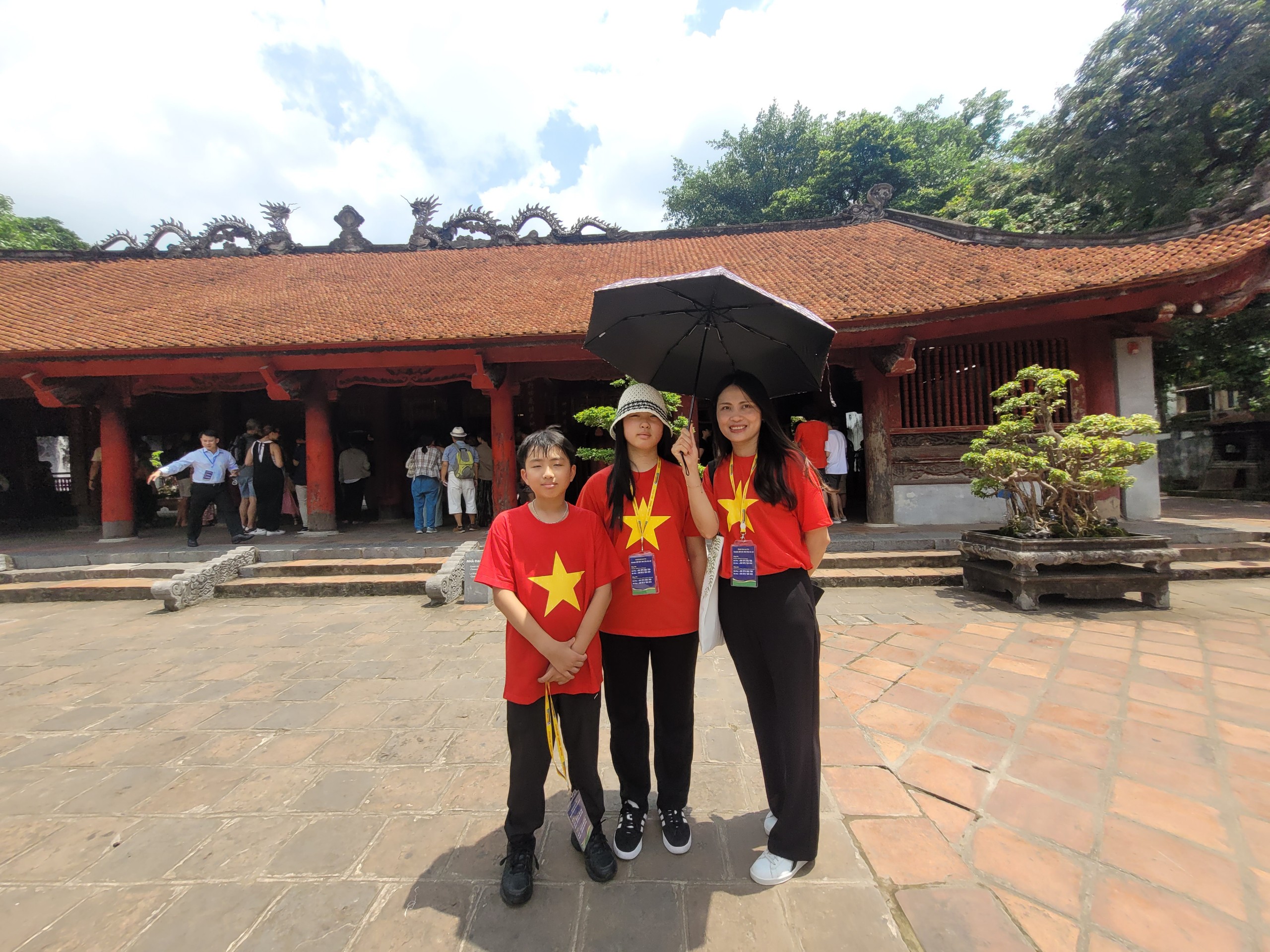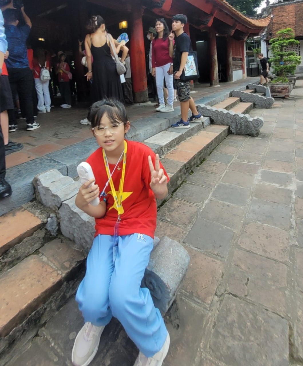 “Văn Miếu Quốc Tử Giám là trường Đại học đầu tiên Việt Nam. Nơi này con thấy phong cảnh rất đẹp và có nhiều khách du lịch”. Em Quốc Vinh chia sẻ.