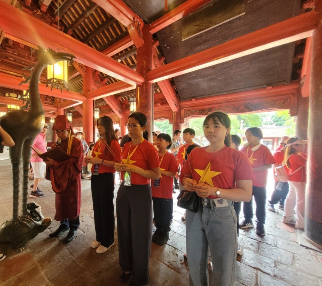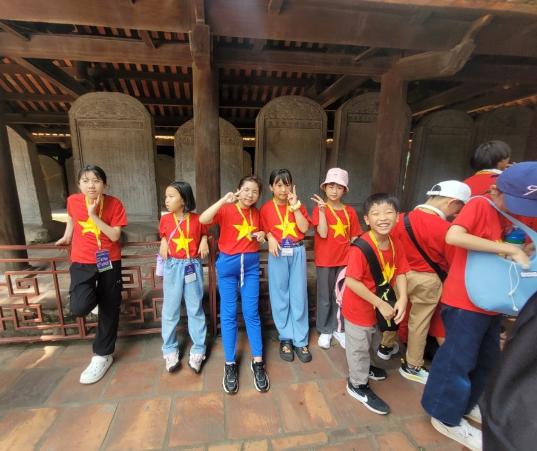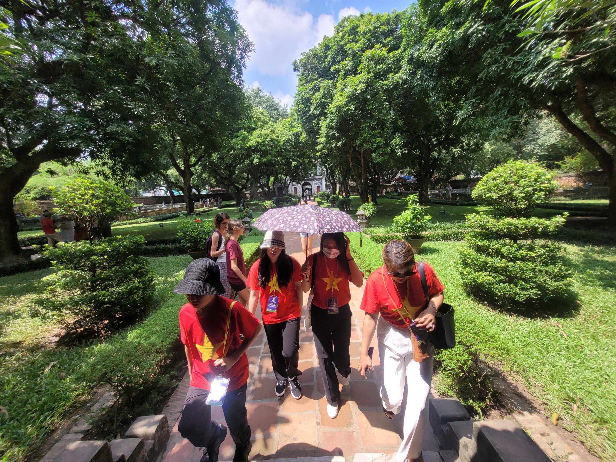 Đến thăm quần thể di tích Văn Miếu Quốc Giám, các em được nghe giới thiệu về ngôi trường đại học đầu tiên của Việt Nam,được biết về danh nhân văn hóa, nhà giáo Chu Văn An và được giải thích về bia đá ghi danh 82 tiến sĩ được UNESCO công nhận là Di sản tư liệu thế giới: