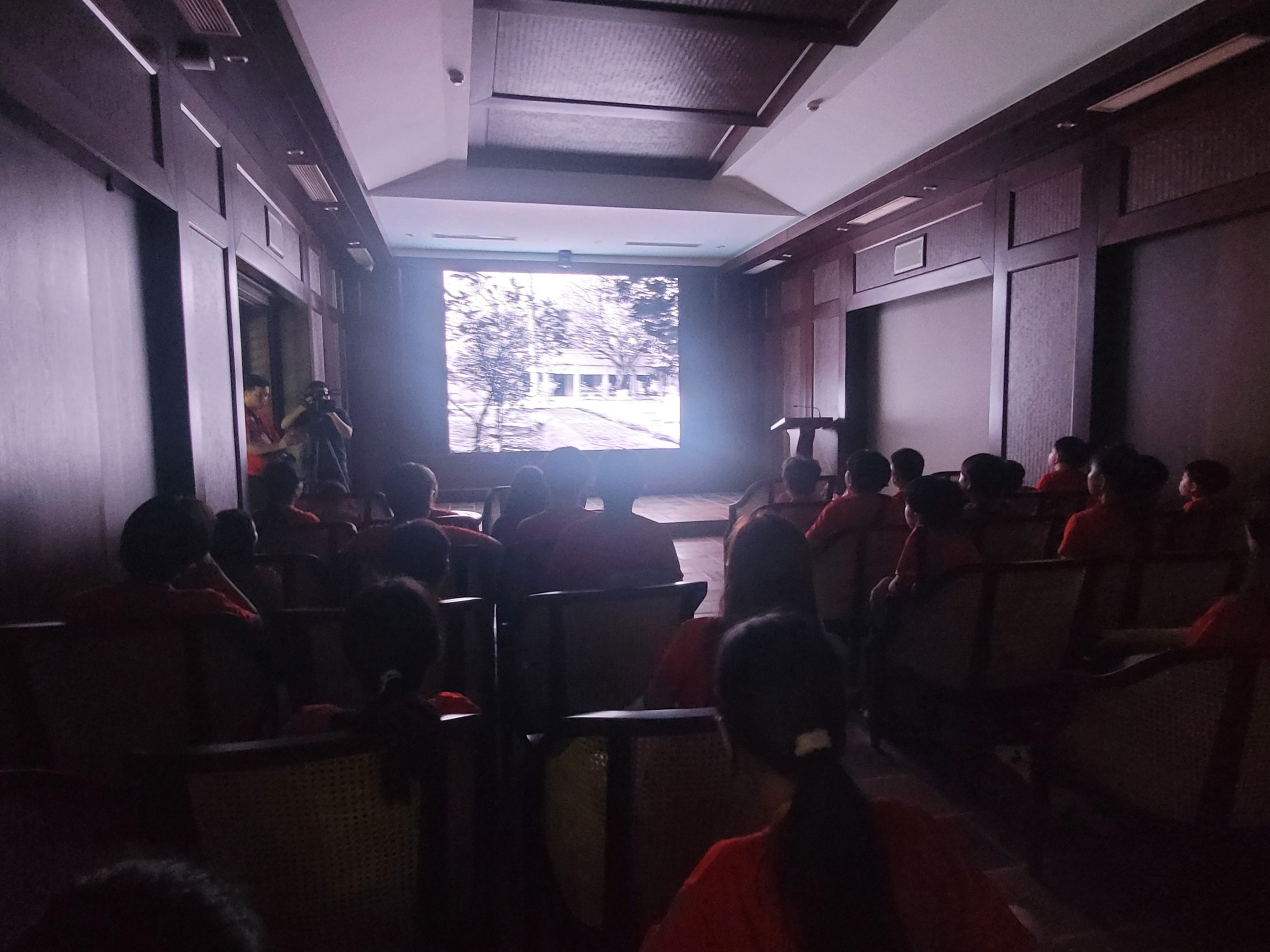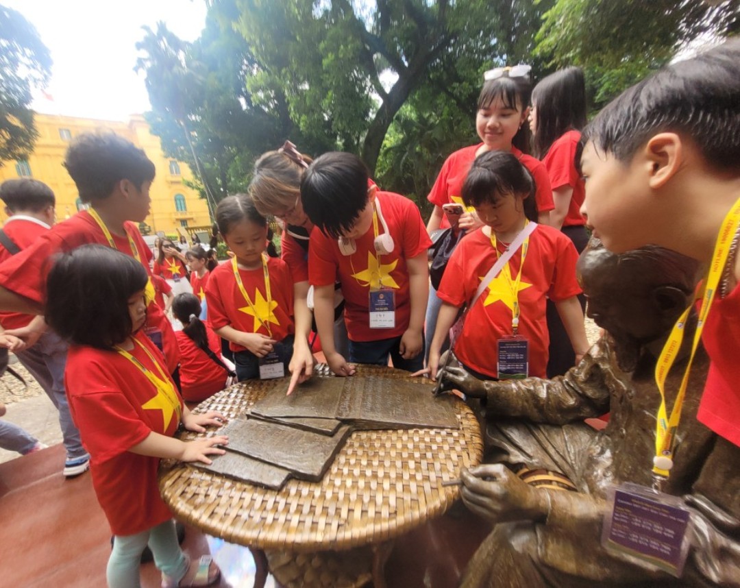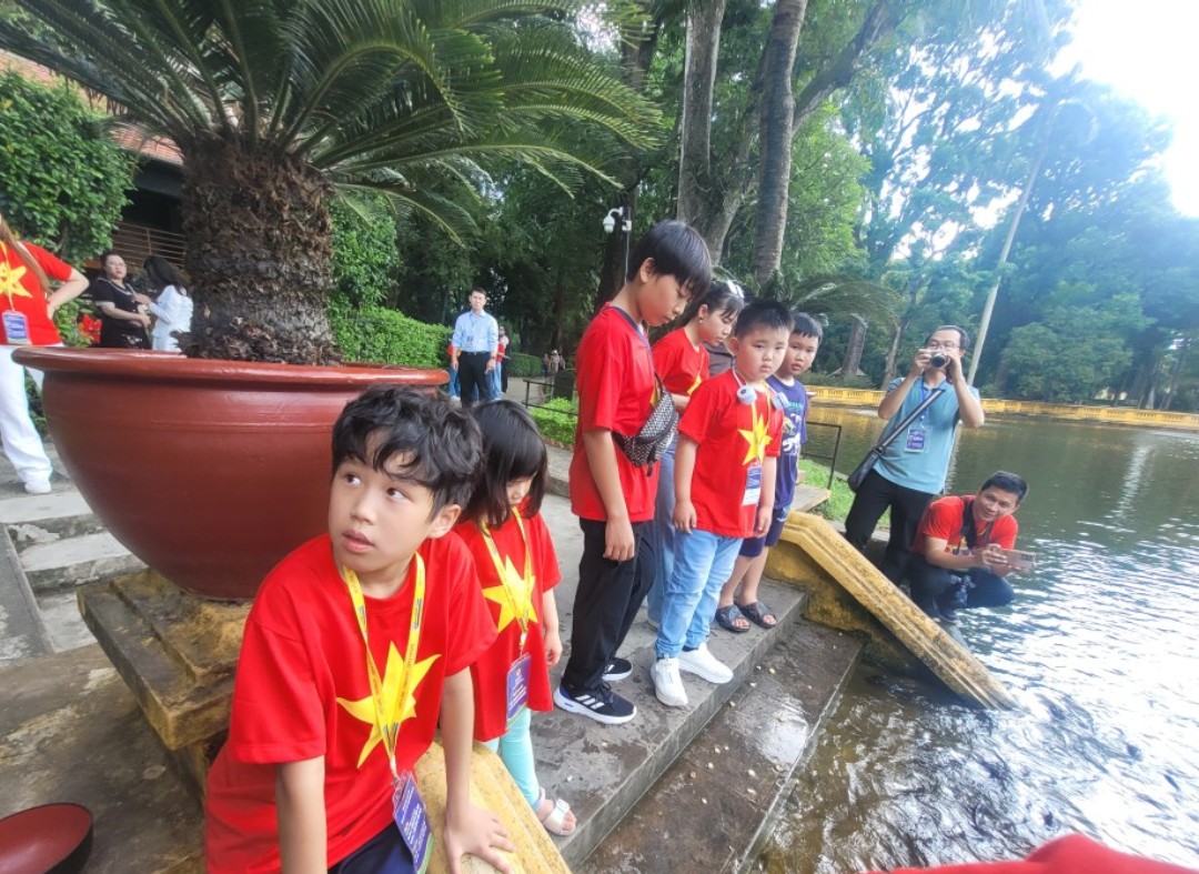 Thời tiết nóng bức làm các em khá mệt và đây cũng là lần điều tiên về Việt Nam mà không có bố mẹ đi cùng nhưng các em đều vui vẻ, chăm chú lắng nghe những chuyện kể về Chủ tịch Hồ Chí Minh, về lịch sử Việt Nam. Xúc động nhất là khi cả cô trò được cùng xem bộ phim tư liệu về Bác Hồ.